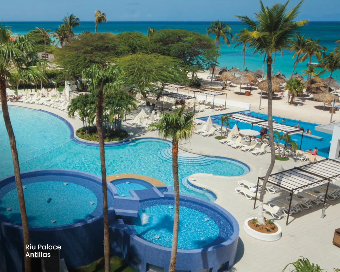Ubicación Frente al Mar: Riu Palace Antillas en Aruba ofrece una zona de playa privada y acceso directo al mar. Los huéspedes disfrutan de vistas al mar y acceso directo a la playa, complementado con una piscina al aire libre disponible todo el año.